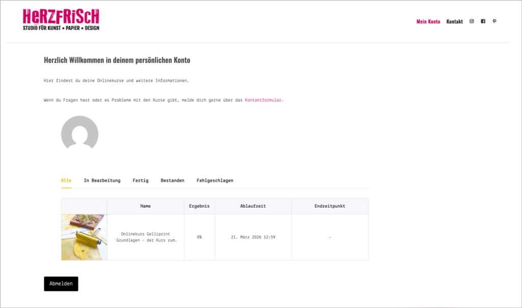 Wenn du dich das erste Mal einloggst, findest du deinen Kurs unter „Alle„