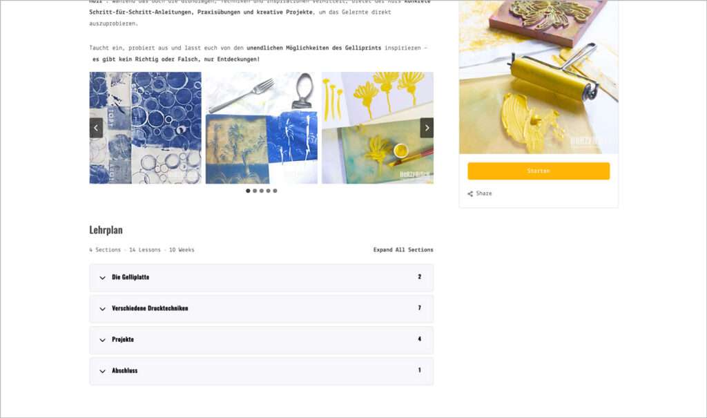 Um den Kurs zu starten, klicke bitte den „Starten“ Button.